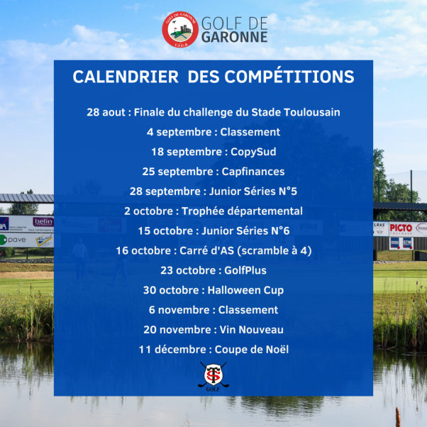 18 août 2022 A vos agendas !! Voici le calendrier des compétitions pour cette fin d'année, L'équipe du Golf