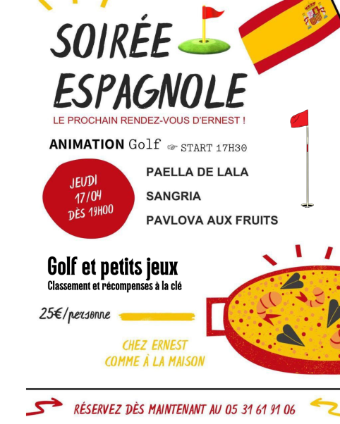 Nous organisons deux animations golf en amont des repas du jeudi soir le prochain, c'est paella 🥘 le 17 avril